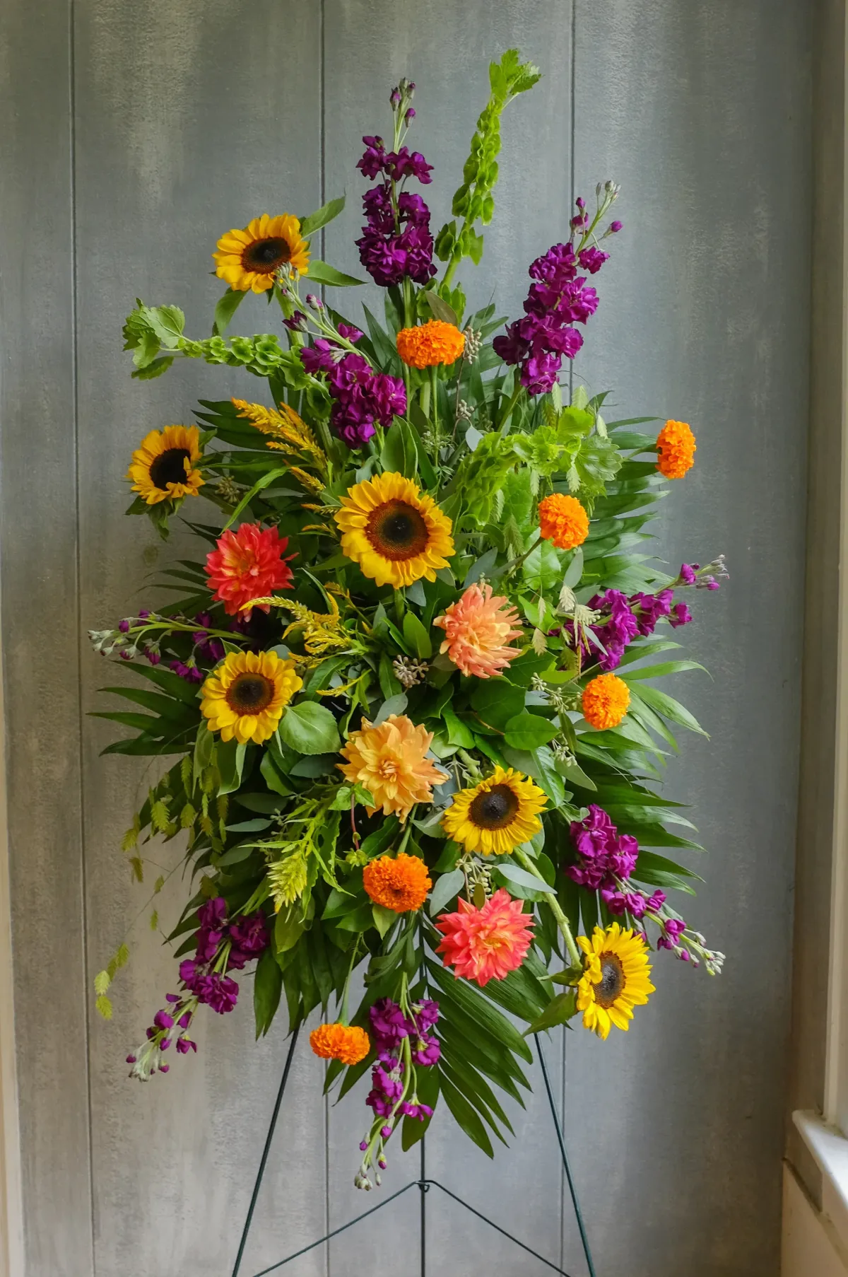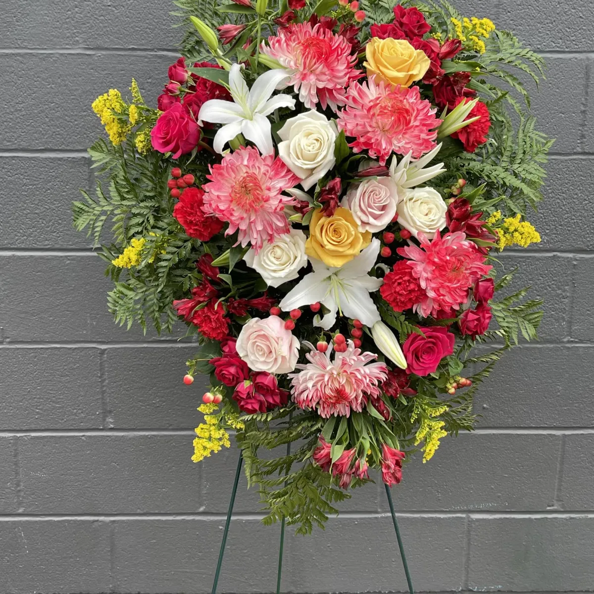 Honor a loved one with our dignified funeral sprays at French Lick Floral & Gifts. These elegant standing arrangements, displayed on easels, feature fresh premium blooms like lilies, roses, and carnations in serene, heartfelt designs. Custom-crafted to convey respect, love, and lasting remembrance, they provide a beautiful tribute at services, viewings, or graveside—delivered locally with compassion and care in French Lick.